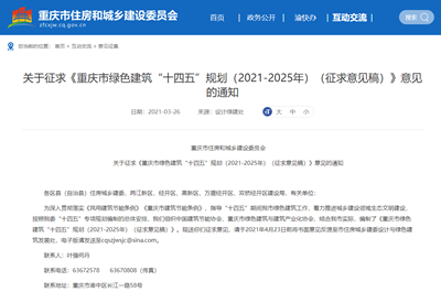 為深入貫徹落實《民用建筑節能條例》《重慶市建筑節能條例》,指導“十四五”期間我市綠色建筑工作,著力推進城鄉建設領域生態文明建設,按照我委“十四五”專項規劃編制的總體安排,我們組織中國建筑節能協會、重慶市綠色建筑與建筑產業化協會,結合我市實際,編制了《重慶市綠色建筑“十四五”規劃(2021-2025年)(征求意見稿)》。現送你們征求意見,請于2021年4月23日前將書面意見反饋至市住房城鄉建委設計與綠色建筑發展處,電子版請發送至cqszjwsjc@sina.com。
