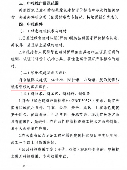 1、扎實推進云南省綠色裝配式建筑高質量發展,云南省具備綠色建材、裝配式建筑部品部件、建筑“四新”研發和生產能力的企業、科研院所、大專院校等法人單位即可申報。